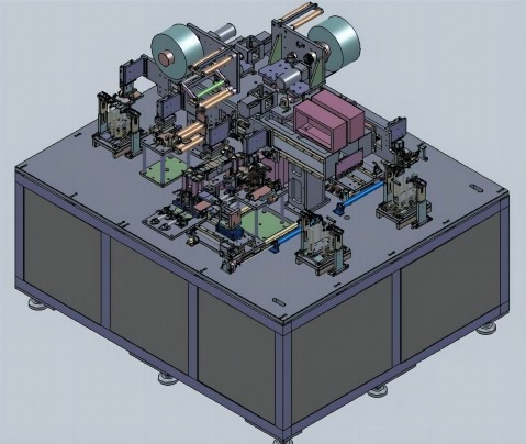 (1)疊片臺用于堆放機(jī)械手搬運(yùn)的正、負(fù)極片及隔膜。