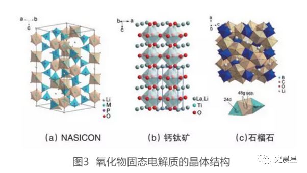 氧化物固體電解質(zhì)按照物質(zhì)結(jié)構(gòu)可以分為晶態(tài)和非晶態(tài)兩類,晶態(tài)電解質(zhì)包括鈣鈦礦型、NASICON型(Na快離子導(dǎo)體)、石榴石型、LISICON型等,玻璃態(tài)(非晶態(tài))氧化物的研究熱點(diǎn)是用在薄膜電池中的 LiPON 型電解質(zhì)和部分晶化的非晶態(tài)材料。
